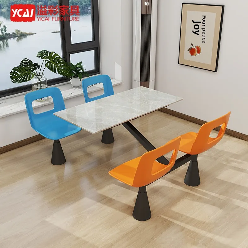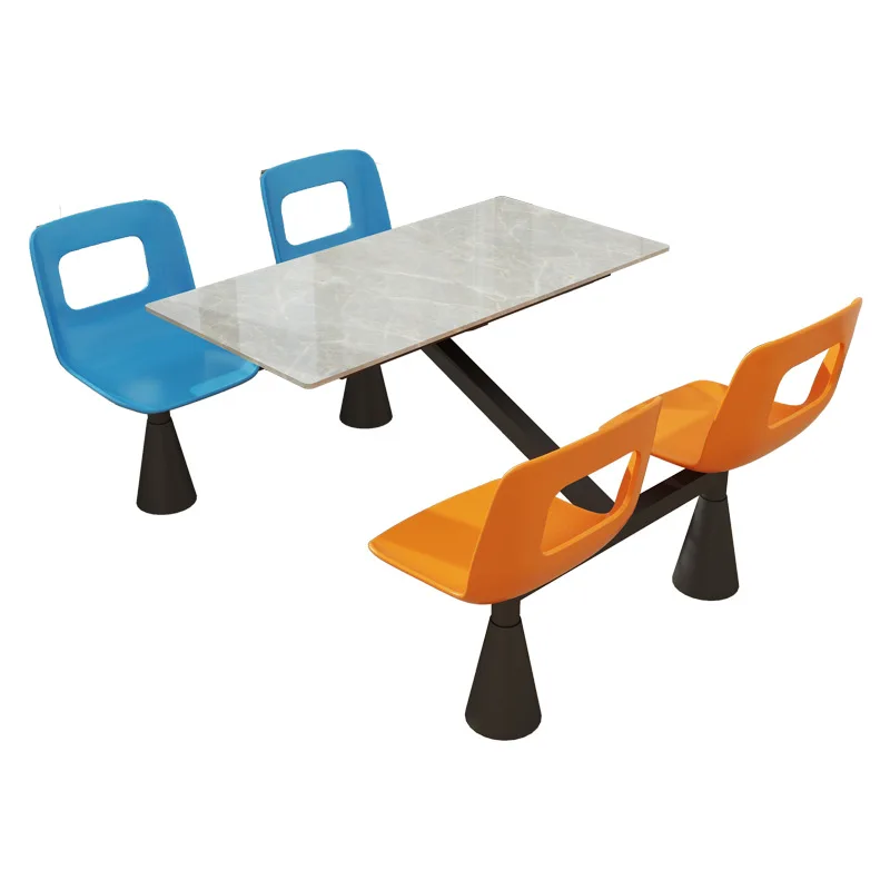 Una atención cuidadosa a los principios ergonómicos garantiza que este Juego Moderno de Sillas para Mesa de Comedor para Cuatro Personas Panel de Madera Losa de Piedra Mobiliario para Cafetería Escolar y Restaurante ofrezca una comodidad óptima para usuarios de diversos grupos de edad y necesidades físicas. Los componentes del asiento presentan superficies contorneadas que favorecen una postura adecuada y reducen la fatiga durante períodos prolongados de comida, especialmente importante en entornos educativos donde las comidas pueden coincidir con actividades de estudio o sociales.