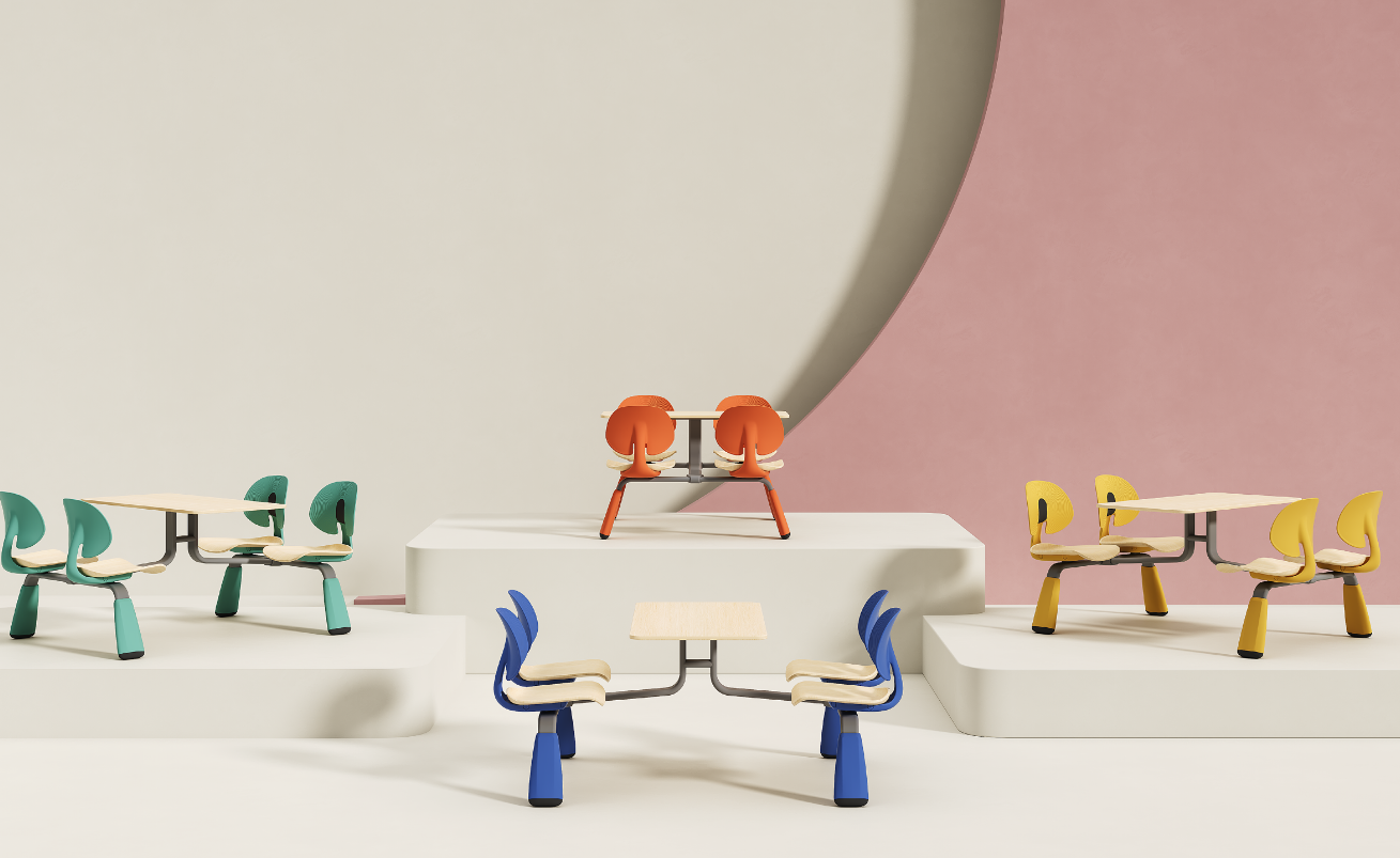 Koleksi LeafRest terinspirasi dari bentuk elegan, urat-urat, dan lengkungan daun teratai. Sandaran punggung ergonomisnya meniru kelengkungan alami kelopak bunga yang mekar, menggabungkan garis-garis lembut dan halus dengan struktur yang kokoh. Desain ini menghadirkan estetika Oriental yang tenang, halus, dan kontemporer ke dalam kantin, ruang makan mahasiswa, restoran staf, serta ruang publik.