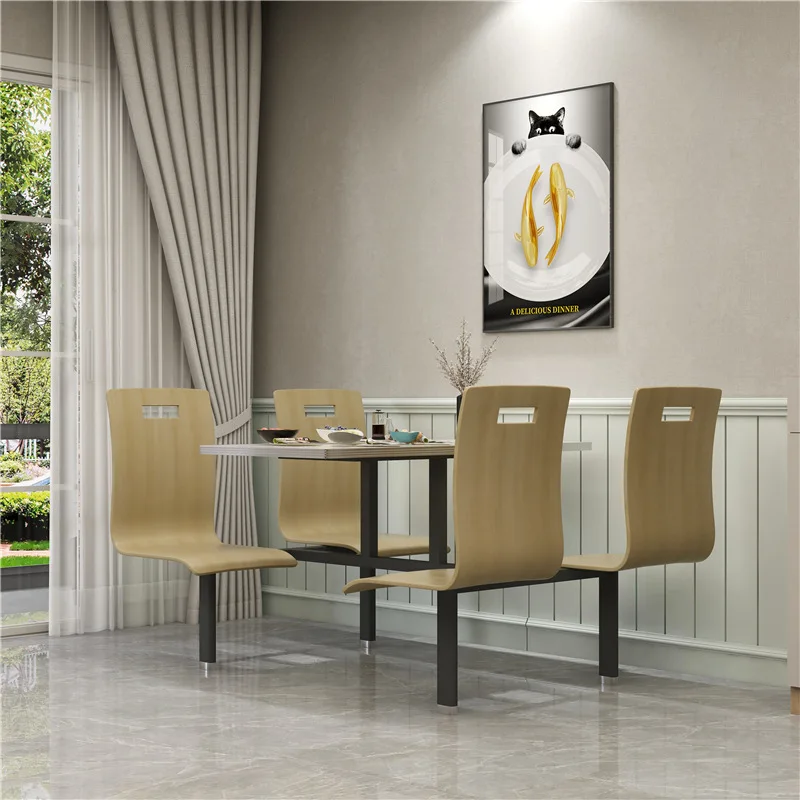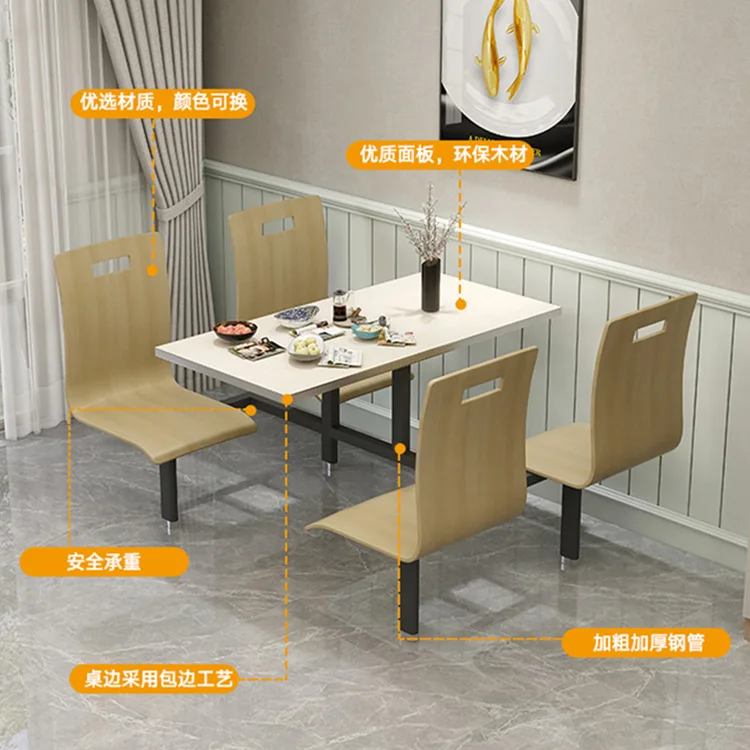 product 4 person modern canteen dining table chair set restaurant furniture panel living room hotel commercial use-9