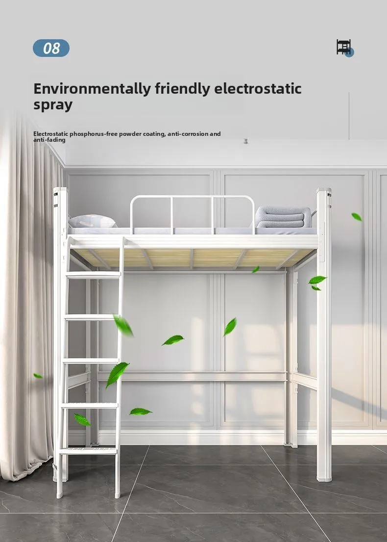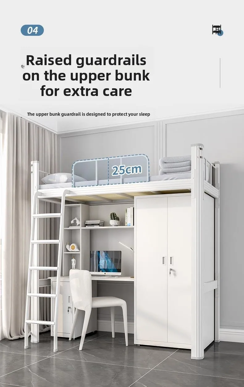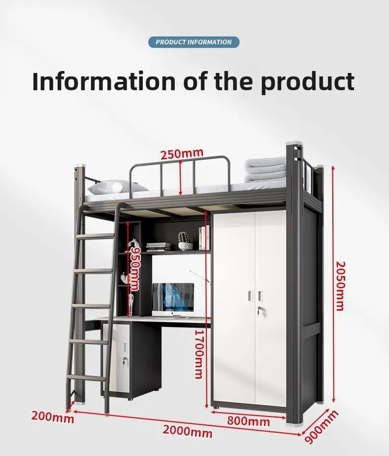 The Factory Wholesale Metal Dormitory Bed with Upper Bed and Lower Desk Frame for College Student Use School Bunk Bed Desk embodies superior engineering and thoughtful design integration. Constructed from premium-grade metal materials, this furniture system features a sophisticated dual-level configuration that seamlessly combines sleeping quarters with a dedicated study workspace below. The upper sleeping platform provides comfortable rest accommodations, while the lower section houses an integrated desk area complete with storage solutions and workspace organization features.