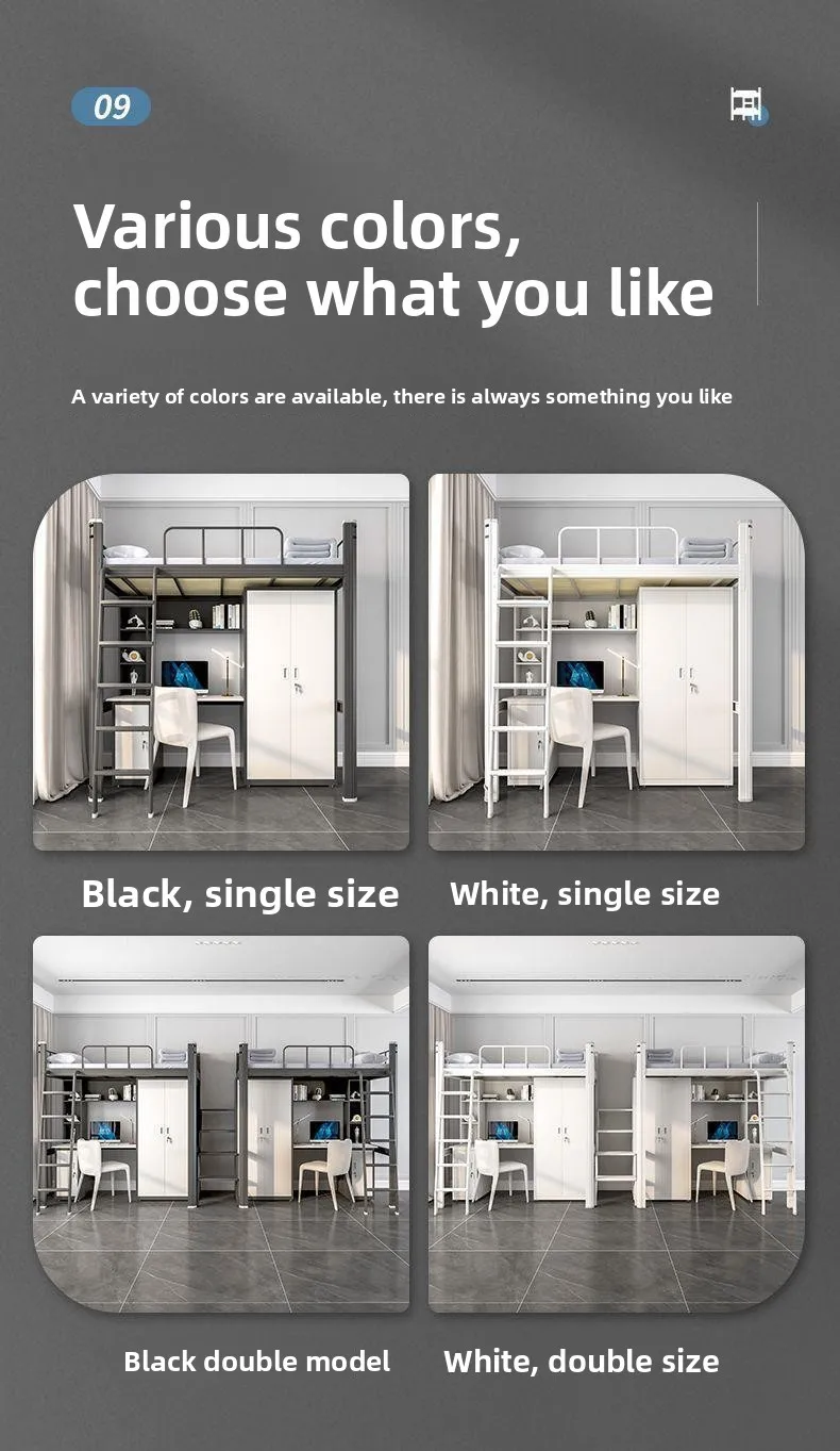 Branding integration services enable educational institutions to incorporate logos, emblems, or other identifying elements into the furniture design through various application methods. These customization capabilities ensure that each Factory Wholesale Metal Dormitory Bed with Upper Bed and Lower Desk Frame for College Student Use School Bunk Bed Desk installation reflects the unique character and values of the institution while maintaining the high-quality standards and functionality that define our products.
