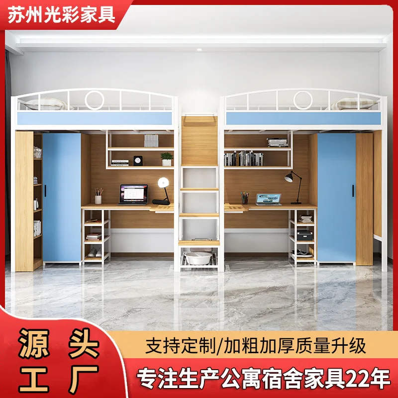 The primary advantage of the Single Adult Iron Bed Upper Bed Lower Table College Students Apartment School Dormitory Bed lies in its exceptional space utilization capabilities. By vertically stacking sleeping and study functions, this furniture solution effectively doubles the usable space within each dormitory unit. This optimization allows educational institutions to accommodate more students per room or provide existing residents with additional personal space for comfort and storage.