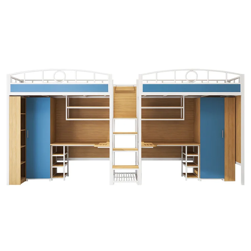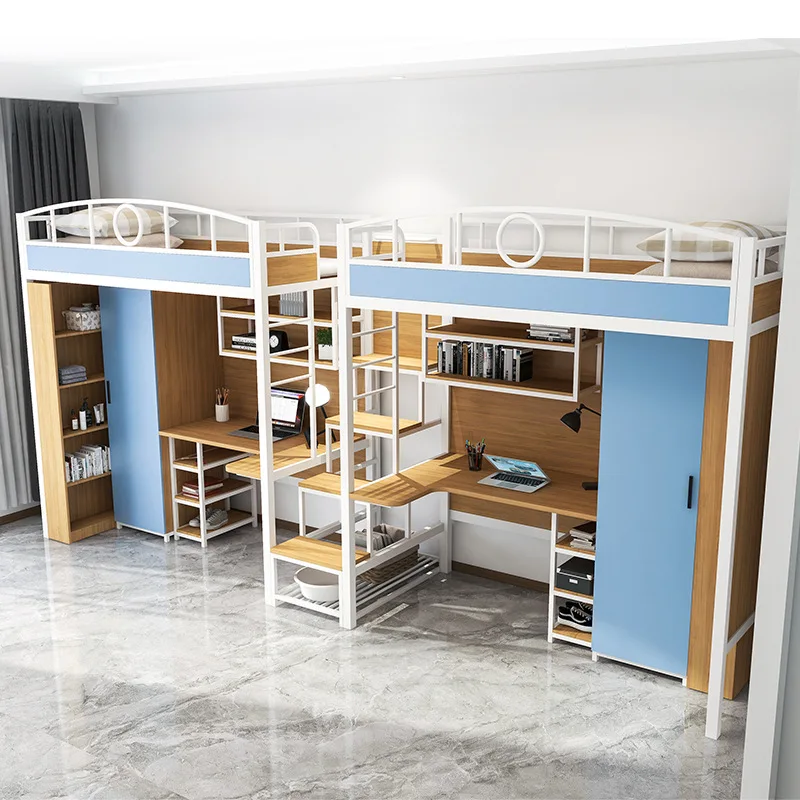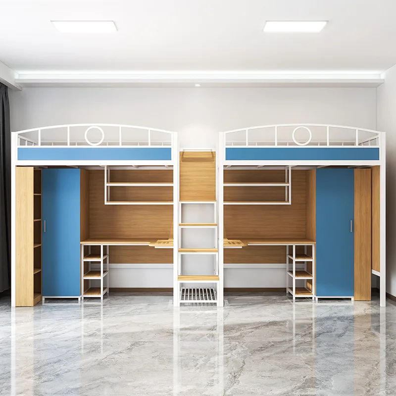 The iron framework utilizes high-grade steel construction with protective coating to resist wear, corrosion, and daily use impacts common in student housing environments. The design prioritizes both structural integrity and aesthetic appeal, featuring clean lines and a contemporary appearance that complements modern dormitory interiors. The integrated table surface provides ample workspace for laptops, textbooks, and study materials, while built-in storage options help students maintain organized living spaces.